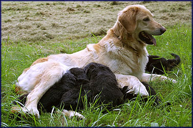 Die Untersuchung aller sieben Welpen dauerte knapp zwei Stunden, so dass vor der Heimfahrt noch Zeit für eine kurze Toberunde nebst Imbiss an der mütterlichen Milchbar blieb. Unsere Erfahrungen mit dem Team der Giessener Veterinärklinik waren sehr positiv, deshalb können wir jedem engagierten Züchter raten, sich an der Studie zu beteiligen. Hier noch ein paar Informationen: - Melden