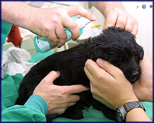 10 Minuten in Anspruch nahm. Die Welpen müssen nicht sediert/narkotisiert