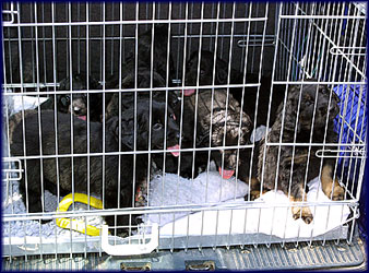 geparkt, von wo aus die Welpen einzeln in den zuvor desinfizierten Untersuchungsraum