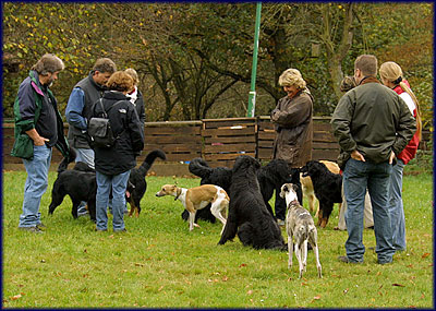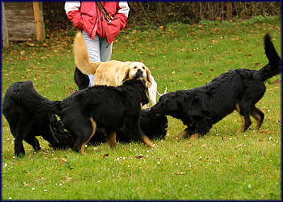 Am 1. November gab es ein kleines Familientreffen auf dem Hundeplatz in Euskirchen: Cathy, Dana, Debby, Dina, Dorie & Duke vom Sonnigen Gemüt sowie deren Mutter Cara, Vater Bartok und die "Trauzeugen" Mojo & Lenny (natürlich alle inkl. ihres menschlichen Anhanges) waren mit von der Partie. Die Halbstarken (Hunde wie Kinder ;-) nutzten das schöne Gelände zum Toben, die Erwachsenen (Menschen ;-) tauschten ihre Erfahrungen aus und konnten sich die eine oder andere Anregung bzgl. Hundehaltung oder - erziehung holen. Die D-Wurf-"Welpen" sind inzwischen richtige Junghunde geworden, die sich allesamt sehr freundlich und fröhlich zeigten. Wir haben uns sehr gefreut, die "Kleinen" und ihre Familien wiederzusehen, es war sicher nicht das letzte Treffen dieser Art!