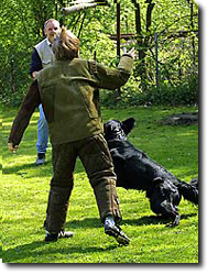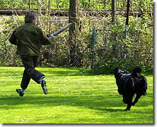 geärgerte Hund wird dann dem flüchtenden Helfer hinterher geschickt