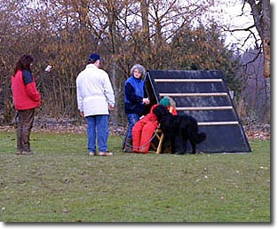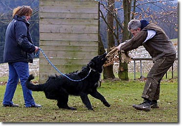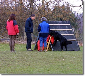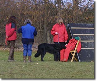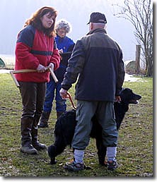 des Hundes (hier: Fine) gegenüber Menschen auch in beengenden Situationen getestet. |