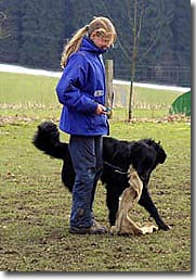 junger Hundeführerin (Freya, gen. Momo links, ihr Vater, Bartok rechts) |