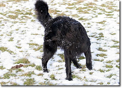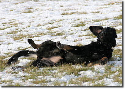 mit einem Stöckchen spielten,genoss Papa Bartel das erste Schneebad